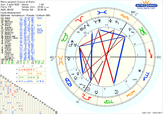 Conjonction Mars Uranus Rahu (Noeud Nord) le 1er août 2022 à 23 h 54 UT